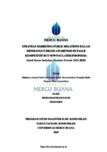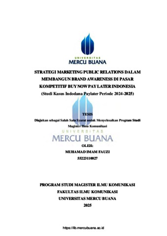 FAUZI, MUHAMAD IMAM (2025) STRATEGI MARKETING PUBLIC RELATIONS DALAM MEMBANGUN BRAND AWARENESS DI PASAR KOMPETITIF BUY NOW PAY LATER INDONESIA (Studi Kasus Indodana Paylater Periode 2024-2025). S2 thesis, Universitas Mercu Buana.