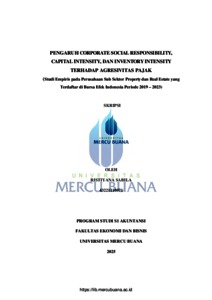 SABILA, RISTIYANA (2025) PENGARUH CORPORATE SOCIAL RESPONSIBILITY, CAPITAL INTENSITY, DAN INVENTORY INTENSITY TERHADAP AGRESIVITAS PAJAK (Studi Empiris pada Perusahaan Sub Sektor Property dan Real Estate yang Terdaftar di Bursa Efek Indonesia Periode 2019 - 2023). S1 thesis, Universitas Mercu Buana Jakarta.