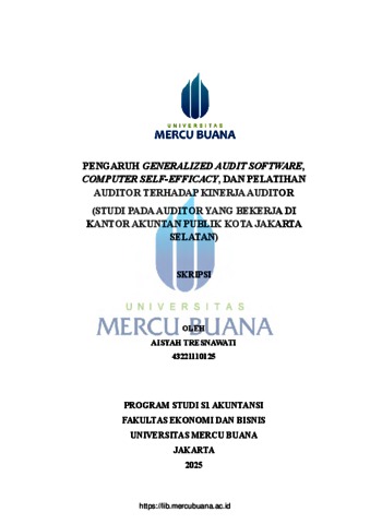 TRESNAWATI, AISYAH (2025) PENGARUH GENERALIZED AUDIT SOFTWARE, COMPUTER SELF-EFFICACY, DAN PELATIHAN AUDITOR TERHADAP KINERJA AUDITOR (STUDI PADA AUDITOR YANG BEKERJA DI KANTOR AKUNTAN PUBLIK KOTA JAKARTA SELATAN). S1 thesis, Universitas Mercu Buana Jakarta.