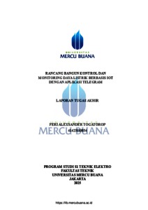 TOGATOROP, FERI ALEXSANDER (2025) RANCANG BANGUN KONTROL DAN MONITORING DAYA LISTRIK BERBASIS IOT DENGAN APLIKASI TELEGRAM. S1 thesis, Universitas Mercu Buana Jakarta.