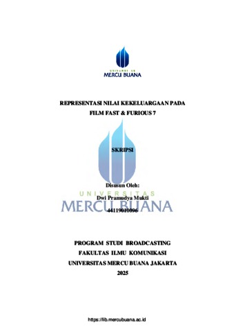 MUKTI, DWI PRAMUDYA (2025) REPRESENTASI NILAI KEKELUARGAAN PADA FILM FAST & FURIOUS 7. S1 thesis, Universitas Mercu Buana Jakarta.