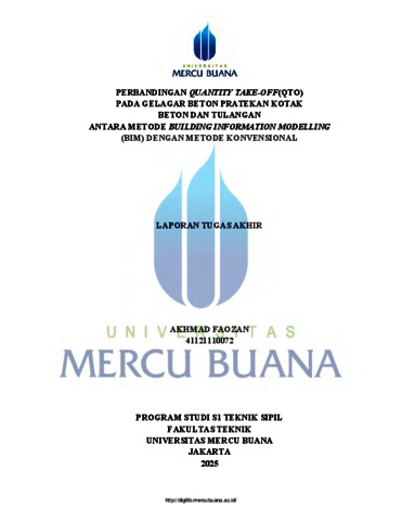 FAOZAN, AKHMAD (2025) PERBANDINGAN QUANTITY TAKE-OFF(QTO) PADA GELAGAR BETON PRATEKAN KOTAK BETON DAN TULANGAN ANTARA METODE BUILDING INFORMATION MODELLING (BIM) DENGAN METODE KONVENSIONAL. S1 thesis, UNIVERSITAS MERCU BUANA - BUNCIT.