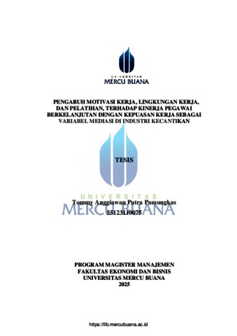PAMUNGKAS, TOMMY ANGGIAWAN PUTRA (2025) PENGARUH MOTIVASI KERJA, LINGKUNGAN KERJA, DAN PELATIHAN, TERHADAP KINERJA PEGAWAI BERKELANJUTAN DENGAN KEPUASAN KERJA SEBAGAI VARIABEL MEDIASI DI INDUSTRI KECANTIKAN. S2 thesis, Universitas Mercu Buana Jakarta.