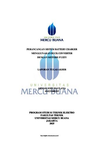 MAULANA, AHMAD SOFI (2025) PERANCANGAN SISTEM BATTERY CHARGER MENGGUNAKAN BUCK CONVERTER DENGAN METODE FUZZY. S1 thesis, UNIVERSITAS MERCU BUANA - BUNCIT.
