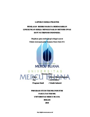 PENILAIAN RESIKO BAHAYA BERDASARKAN LINGKUNGAN KERJA MENGGUNAKAN METODE OWAS DI PT NUTRIFOOD INDONESIA.