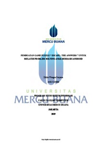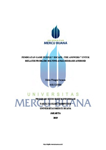 SURYANA, DIKKA WANGSA (2019) PEMBUATAN GAME PUZZLE"ESCAPE: THE ANSWERS" UNTUK MELATIH PROBLEM SOLVING ANAK BERBASIS ANDROID. S1 thesis, UNIVERSITAS MERCU BUANA - BUNCIT.
