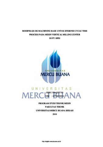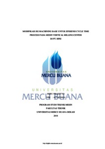 PRASETYO, HERU PRASETYO (2018) MODIFIKASI JIG MACHINING BASE UNTUK EFISIENSI CYCLE TIME PROCESS PADA MESIN VERTICAL MILLING CENTER DI PT. HPSI. S1 thesis, UNIVERISTAS MERCU BUANA - BUNCIT.