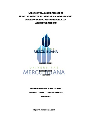 REFORMANSHAH, REFORMANSHAH (2025) PERANCANGAN GEDUNG CAHAYA RANCAMAYA ISLAMIC BOARDING SCHOOL DENGAN PENDEKATAN ARSITEKTUR MODERN. S1 thesis, Universitas Mercu Buana Jakarta.