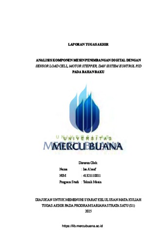 ISA A'RAAF, ISA A'RAAF (2025) ANALISIS KOMPONEN MESIN PENIMBANGAN DIGITAL DENGAN SENSOR LOAD CELL, MOTOR STEPPER, DAN SISTEM KONTROL PID PADA BAHAN BAKU. S1 thesis, Universitas Mercu Buana Jakarta.