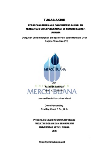 ADHARI, RIZAL EKA (2025) PERANCANGAN ULANG LOGO TUMPENG DKI DALAM MEMBANGUN CITRA PERUSAHAAN DI INDUSTRI KULINER JAKARTA. S1 thesis, Universitas Mercu Buana Jakarta.