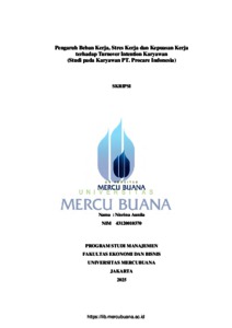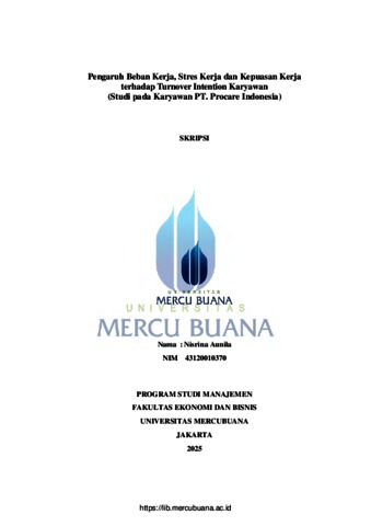 AUNILA, NISRINA (2025) PENGARUH BEBAN KERJA, STRES KERJA DAN KEPUASAN KERJA TERHADAP TURNOVER INTENTION KARYAWAN (Studi pada Karyawan PT. Procare Indonesia). S1 thesis, Universitas Mercu Buana Jakarta.