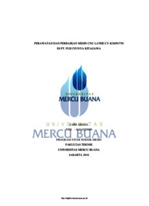 AKMAL, ZAIM (2018) PERAWATAN DAN PERBAIKAN MESIN CNC LATHE CY-K360N/750 DI PT. FUJI JYUNYA KITAGAWA. S1 thesis, UNIVERSITAS MERCU BUANA - BUNCIT.