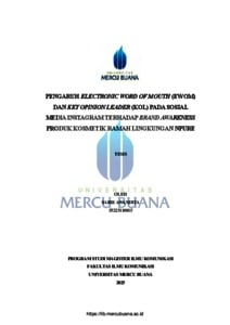 ANANDITA, SARIE (2025) PENGARUH ELECTRONIC WORD OF MOUTH (EWOM) DAN KEY OPINION LEADER (KOL) PADA SOSIAL MEDIA INSTAGRAM TERHADAP BRAND AWARENESS PRODUK KOSMETIK RAMAH LINGKUNGAN NPURE. S2 thesis, Universitas Mercu Buana Jakarta.