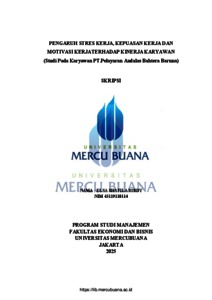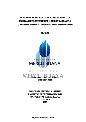 BIRDY, ELSA SHAFILA (2025) PENGARUH STRES KERJA, KEPUASAN KERJA DAN MOTIVASI KERJA TERHADAP KINERJA KARYAWAN (Studi Pada Karyawan PT.Pelayaran Andalas Bahtera Baruna). S1 thesis, Universitas Mercu Buana Jakarta.