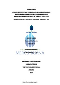 ANJASTRA, MUHAMAT NIKO (2025) ANALISIS EFEKTIVITAS PENGELOLAAN AIR LIMBAH TAMBANG BATUBARA DALAM MENURUNKAN KADAR ASAM DAN KANDUNGAN LUMPUR DENGAN METODE SETTLING POND. S1 thesis, Universitas Mercu Buana Jakarta.