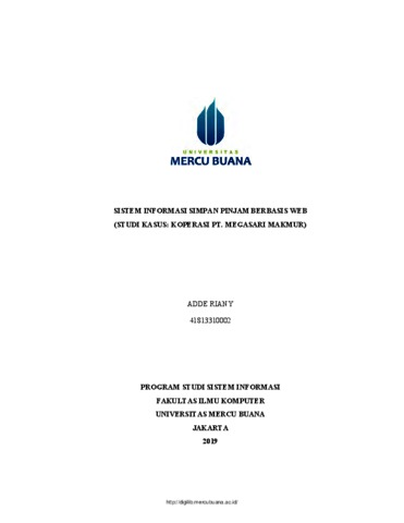 RIANY, ADDE (2019) SISTEM INFORMASI SIMPAN PINJAM BERBASIS WEB (STUDI KASUS: KOPERASI PT. MEGASARI MAKMUR). S1 thesis, UNIVERISTAS MERCU BUANA - BUNCIT.