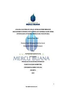 ROHAYANI, PUTRI RETNO (2019) ANALISA DAN PERANCANGAN APLIKASI PERFORMANCE MANAGEMENT SYSTEM UNTUK PENILAIAN KINERJA KARYAWAN (STUDI KASUS: PT SUPRA PRIMATAMA NUSANTARA). S1 thesis, UNIVERSITAS MERCU BUANA - BUNCIT.