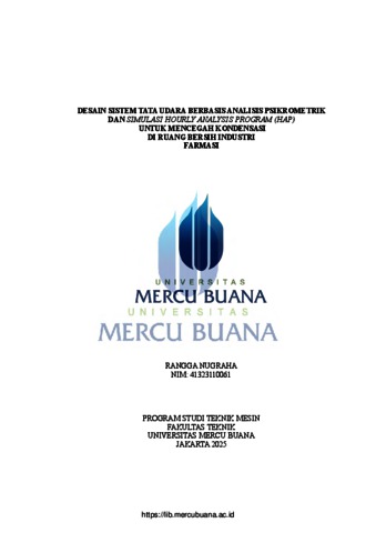 NUGRAHA, RANGGA (2025) DESAIN SISTEM TATA UDARA BERBASIS ANALISIS PSIKROMETRIK DAN SIMULASI HOURLY ANALYSIS PROGRAM (HAP) UNTUK MENCEGAH KONDENSASI DI RUANG BERSIH INDUSTRI FARMASI. S1 thesis, Universitas Mercu Buana Jakarta.