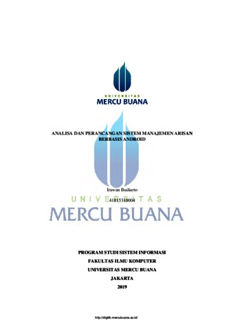 BUDIARTO, IRAWAN (2019) ANALISA DAN PERANCANGAN SISTEM MANAJEMEN ARISAN BERBASIS ANDROID. S1 thesis, UNIVERSITAS MERCU BUANA - BUNCIT.