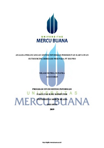 SUPATRA, NILAM OKTRIA (2019) ANALISA PERANCANGAN SISTEM INFORMASI PEREKRUTAN KARYAWAN OUTSOURCING BERBASIS WEB PADA PT BSI PRO. S1 thesis, UNIVERISTAS MERCU BUANA - BUNCIT.
