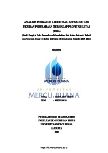 YUNIARTI, INAYAH TRI (2025) ANALISIS PENGARUH LIKUIDITAS, LEVERAGE, DAN UKURAN PERUSAHAAN TERHADAP PROFITABILITAS (ROA) (Studi Empiris Pada Perusahaan Manufaktur Sub Sektor Industri Tekstil dan Garmen Yang Terdaftar di Bursa Efek Indonesia Periode 2019-2023). S1 thesis, Universitas Mercu Buana Jakarta.