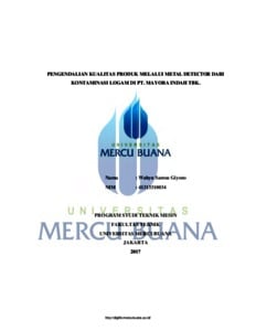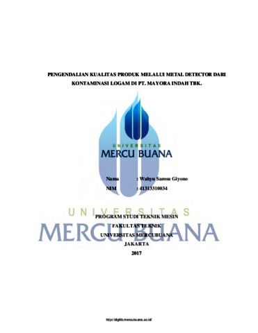 GIYONO, WAHYU SAMSU (2017) PENGENDALIAN KUALITAS PRODUK MELALUI METAL DETECTOR DARI KONTAMINASI LOGAM DI PT. MAYORA INDAH TBK. S1 thesis, UNIVERSITAS MERCU BUANA - BUNCIT.