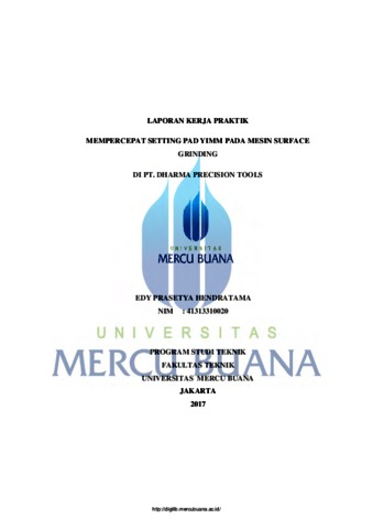 HENDRATAMA, EDY PRASETYA (2017) MEMPERCEPAT SETTING PAD YIMM PADA MESIN SURFACE GRINDING DI PT. DHARMA PRECISION TOOLS. S1 thesis, UNIVERSITAS MERCU BUANA - BUNCIT.