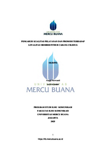 PURWANTI, ANGGI (2025) PENGARUH KUALITAS PELAYANAN DAN PROMOSI TERHADAP LOYALITAS MEMBER FITHUB CABANG CILEDUG. S1 thesis, Universitas Mercu Buana Jakarta.