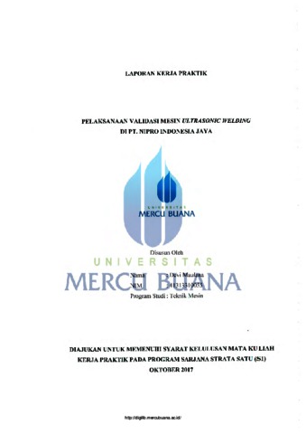 MAULANA, DEVI (2017) PELAKSANAAN VALIDASI MESIN ULTRASONIC WELDING DI PT.NIPRO INDONESIA JAYA. S1 thesis, UNIVERISTAS MERCU BUANA - BUNCIT.