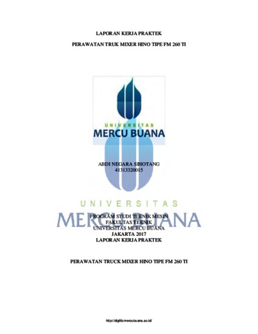 SIHOTANG, ABDI NEGARA (2017) PERAWATAN TRUK MIXER HINO TIPE FM 260 TI. S1 thesis, UNIVERISTAS MERCU BUANA - BUNCIT.