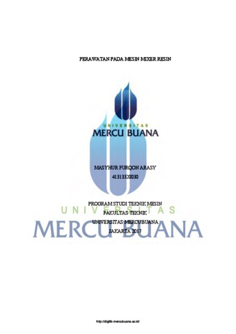 ARASY, MASYHUR FURQON (2017) PERAWATAN PADA MESIN MIXER RESIN. S1 thesis, UNIVERSITAS MERCU BUANA - BUNCIT.