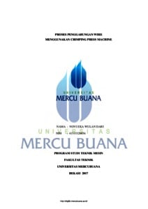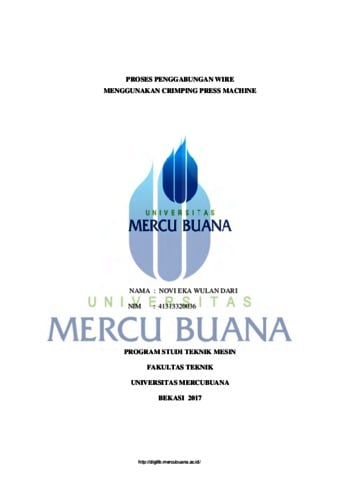 WULAN DARI, NOVI EKA (2017) PROSES PENGGABUNGAN WIRE MENGGUNAKAN CRIMPING PRESS MACHINE. S1 thesis, UNIVERSITAS MERCU BUANA - BUNCIT.