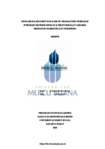HANSA, SADDAM MAULANA (2024) PENGARUH E-SECURITY DAN EASE OF TRANSACTION TERHADAP PURCHASE DECISION DENGAN E-TRUST SEBAGAI VARIABEL MEDIASI DI MARKETPLACE TOKOPEDIA. S1 thesis, Universitas Mercu Buana Jakarta.