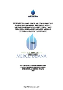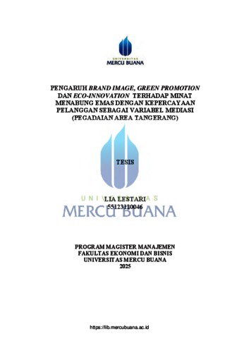 LESTARI, LIA (2025) PENGARUH BRAND IMAGE, GREEN PROMOTION DAN ECO-INNOVATION TERHADAP MINAT MENABUNG EMAS DENGAN KEPERCAYAAN PELANGGAN SEBAGAI VARIABEL MEDIASI (PEGADAIAN AREA TANGERANG). S2 thesis, Universitas Mercu Buana Jakarta.