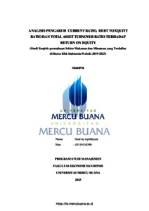 APRILLIYANI, SEALVIA (2025) ANALISIS PENGARUH CURRENT RATIO, DEBT TO EQUITY RATIO DAN TOTAL ASSET TURNOVER RATIO TERHADAP RETURN ON EQUITY (Studi Empiris perusahaan Sektor Makanan dan Minuman yang Terdaftar di Bursa Efek Indonesia Periode 2019-2023). S1 thesis, Universitas Mercu Buana Jakarta.