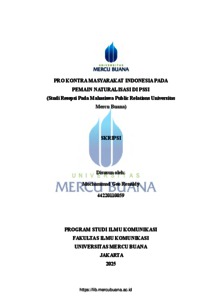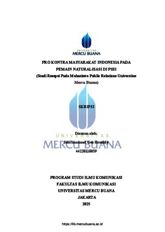 RENALDY, MOCHAMMAD GEO (2025) PRO KONTRA MASYARAKAT INDONESIA PADA PEMAIN NATURALISASI DI PSSI (Studi Resepsi Pada Mahasiswa Public Relations Universitas Mercu Buana). S1 thesis, Universitas Mercu Buana Jakarta.