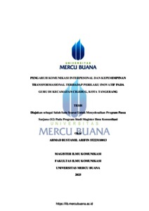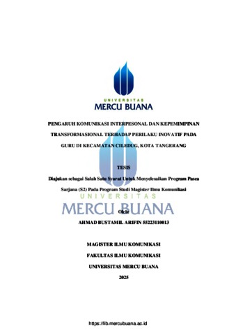 ARIFIN, AHMAD BUSTAMIL (2025) PENGARUH KOMUNIKASI INTERPESONAL DAN KEPEMIMPINAN TRANSFORMASIONAL TERHADAP PERILAKU INOVATIF PADA GURU DI KECAMATAN CILEDUG, KOTA TANGERANG. S2 thesis, Universitas Mercu Buana Jakarta.