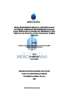 MURDIYANTI, MURDIYANTI (2025) PENGARUH PROFITABILITAS, LIKUIDITAS DAN LEVERAGE TERHADAP PENGHINDARAN PAJAK PADA PERUSAHAAN DI BIDANG PROPERTI YANG TERDAFTAR DI BURSA EFEK INDONESIA TAHUN 2020-2023. S2 thesis, Universitas Mercu Buana Jakarta.