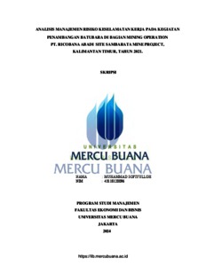 SOFIYULLOH, MUHAMMAD (2024) ANALISIS MANAJEMEN RISIKO KESELAMATAN KERJA PADA KEGIATAN PENAMBANGAN BATUBARA DI BAGIAN MINING OPERATION PT. RICOBANA ABADI SITE SAMBARATA MINE PROJECT, KALIMANTAN TIMUR, TAHUN 2021. S1 thesis, Universitas Mercu Buana Jakarta.