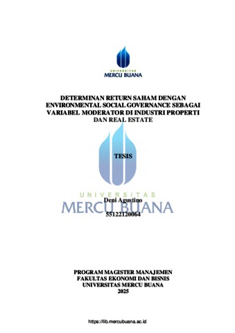 AGUSTINO, DENI (2025) DETERMINAN RETURN SAHAM DENGAN ENVIRONMENTAL SOCIAL GOVERNANCE SEBAGAI VARIABEL MODERATOR DI INDUSTRI PROPERTI DAN REAL ESTATE. S2 thesis, Universitas Mercu Buana Jakarta.