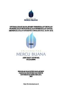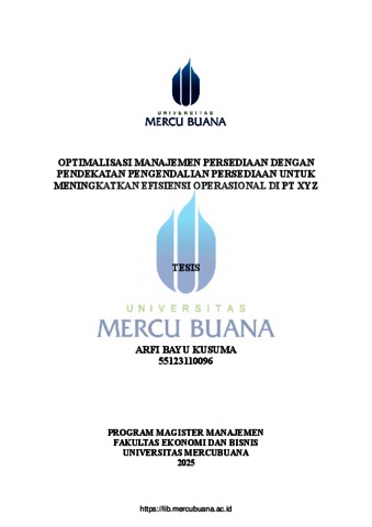 KUSUMA, ARFI BAYU (2025) OPTIMALISASI MANAJEMEN PERSEDIAAN DENGAN PENDEKATAN PENGENDALIAN PERSEDIAAN UNTUK MENINGKATKAN EFISIENSI OPERASIONAL DI PT XYZ. S2 thesis, Universitas Mercu Buana Jakarta.
