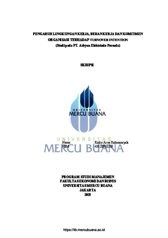 RAHMANSYAH, RIZKY ARYA (2025) PENGARUH LINGKUNGAN KERJA, BEBAN KERJA DAN KOMITMEN ORGANISASI TERHADAP TURNOVER INTENTION (Studi pada PT. Arbyan Elektrindo Persada). S1 thesis, Universitas Mercu Buana Jakarta.