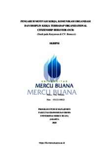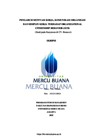 VILLANIA, VIRA (2025) PENGARUH MOTIVASI KERJA, KOMUNIKASI ORGANISASI DAN DISIPLIN KERJA TERHADAP ORGANIZATIONALCITIZENSHIP BEHAVIOR (OCB) (Studi pada Karyawan di CV. Bonucci). S1 thesis, Universitas Mercu Buana Jakarta.