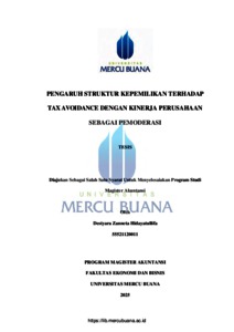 HIDAYATULLIFA, DESTYARA ZANNETA (2025) PENGARUH STRUKTUR KEPEMILIKAN TERHADAP TAX AVOIDANCE DENGAN KINERJA PERUSAHAAN SEBAGAI PEMODERASI. S2 thesis, Universitas Mercu Buana Jakarta.