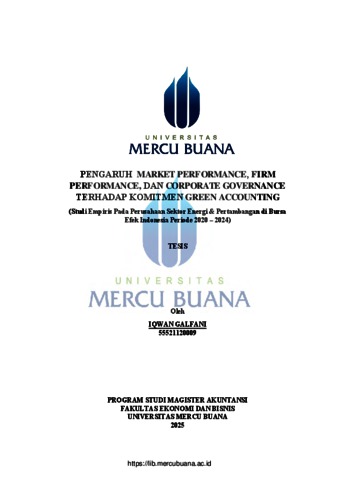 GALFANI, IQWAN (2025) PENGARUH MARKET PERFORMANCE, FIRM PERFORMANCE, DAN CORPORATE GOVERNANCE TERHADAP KOMITMEN GREEN ACCOUNTING (Studi Empiris Pada Perusahaan Sektor Energi & Pertambangan di Bursa Efek Indonesia Periode 2020 - 2024). S2 thesis, Universitas Mercu Buana Jakarta.