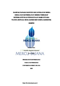 SUPRIYANTO, SALSABILLA ANGGRAINI (2025) DAMPAK PAPARAN KONTEN KECANTIKAN DI MEDIA SOSIAL DAN KETERIKATAN MEREK TERHADAP KETERGANTUNGAN PENGGUNAAN MAKE-UP PADA WANITA DEWASA MUDA KOMSUMEN EMINA KOSMETIK. S1 thesis, Universitas Mercu Buana Jakarta.