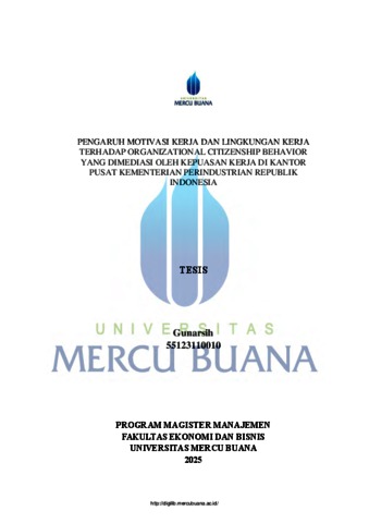 GUNARSIH, GUNARSIH (2025) PENGARUH MOTIVASI KERJA DAN LINGKUNGAN KERJA TERHADAP ORGANIZATIONAL CITIZENSHIP BEHAVIOR YANG DIMEDIASI OLEH KEPUASAN KERJA DI KANTOR PUSAT KEMENTERIAN PERINDUSTRIAN REPUBLIK INDONESIA. S2 thesis, UNIVERSITAS MERCU BUANA - BUNCIT.