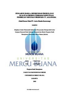 FARRAS, ABEL (2018) PENGARUH HARGA, DIFERENSIASI PRODUK, DAN KUALITAS PRODUK TERHADAP KEPUTUSAN PEMBELIAN MINUMAN PRODUKSI CV. AGLONEMA (Studi Kasus Pada PT. Astra Honda Karawang). S1 thesis, UNIVERSITAS MERCU BUANA - BUNCIT.