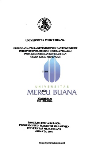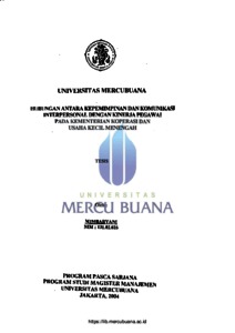 MIMBARYANI, MIMBARYANI (2004) HUBUNGAN ANTARA KΕΡΕΜΙΜΡΙΝAN DAN KOMUNIKASI INTERPERSONAL DENGAN KINERJA PEGAWAI PADA KEMENTERIAN KOPERASI DAN USAHA KECIL MENENGAH. S2 thesis, Universitas Mercu Buana Jakarta.