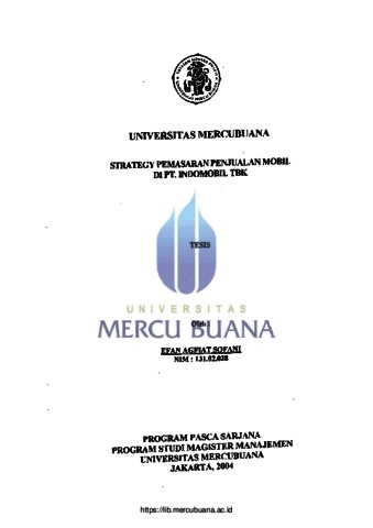 SOFANI, EFAN AGFIAT (2004) STRATEGY PEMASARAN PENJUALAN MOBIL DI PT. INDOMOBIL TBK. S2 thesis, Universitas Mercu Buana Jakarta.